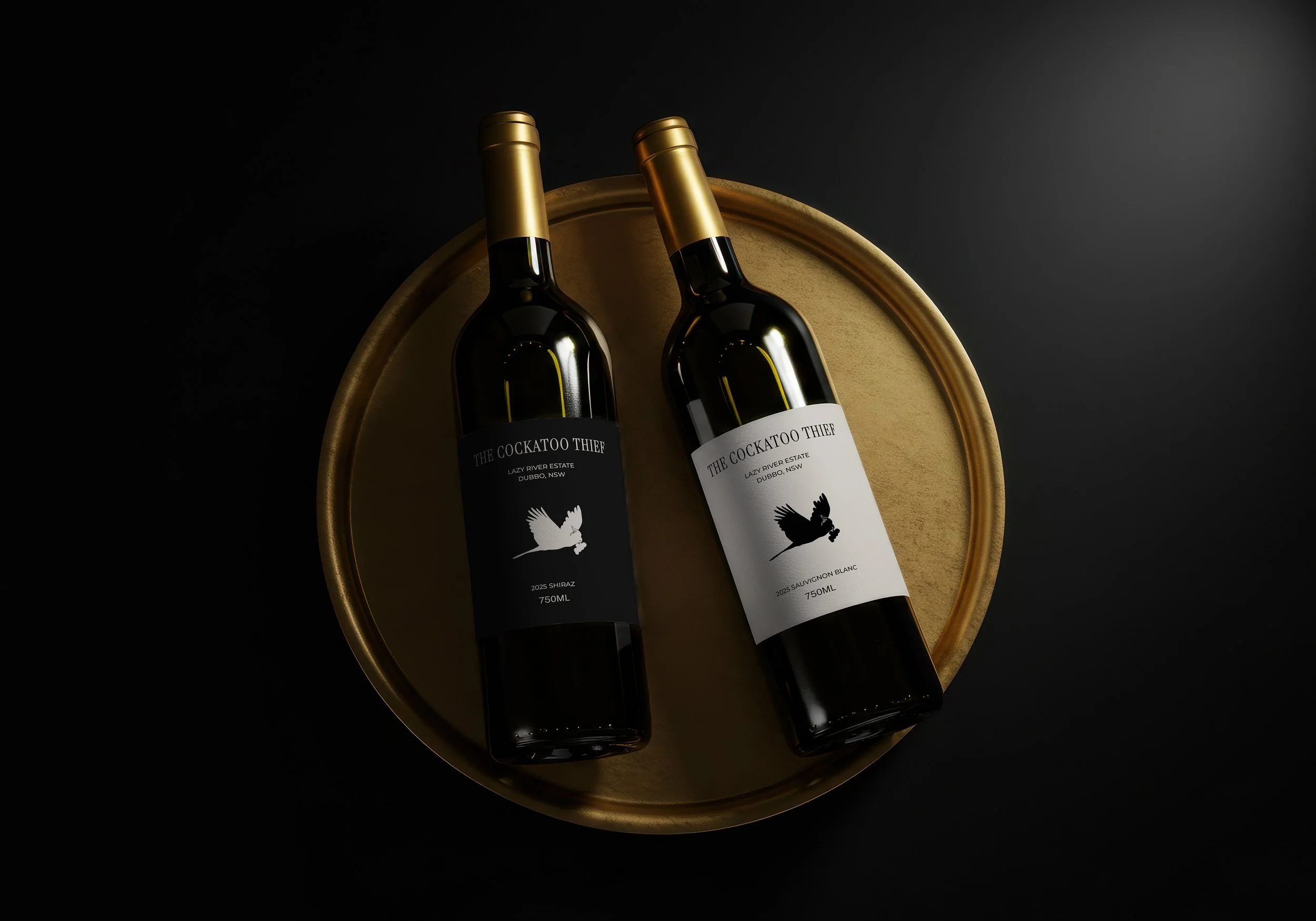 The Cockatoo Thief is a new wine label by Lazy River Estate in Dubbo, inspired by the playful challenge cockatoos pose to the vineyard each season. The goal was to create a brand that captured this spirited story, highlighting the vineyard’s respect for nature, the pursuit of perfect timing, and the character of their wines, while standing out on crowded shelves.
