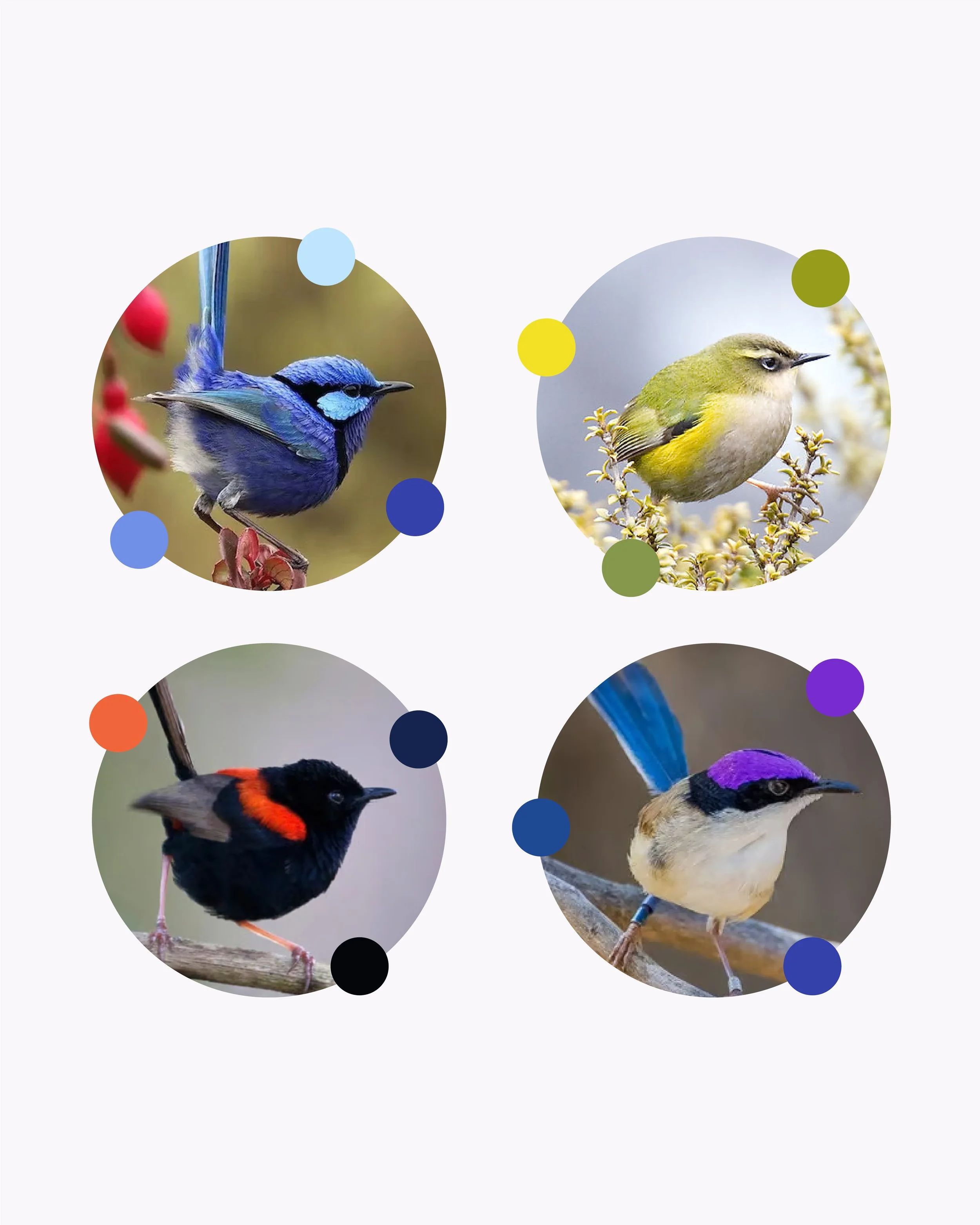 The solution began with the fairy wren. Inspired by the striking electric blues, bright reds, and soft lavenders of different species, I curated a palette that could speak to engineers and environmentalists alike.